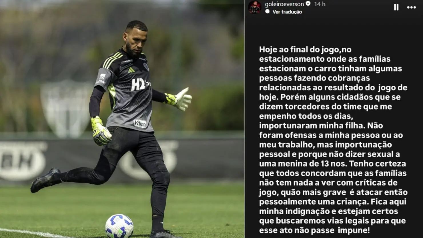 Everson se pronunciou nas redes sociais e ressaltou que o ataque não tinha relação com críticas ao seu trabalho. “Não foram ofensas a minha pessoa ou ao meu trabalho, mas importunação pessoal e, porque não dizer sexual, a uma menina de 13 anos”, afirmou. O jogador garantiu que buscará justiça e punição para os responsáveis.