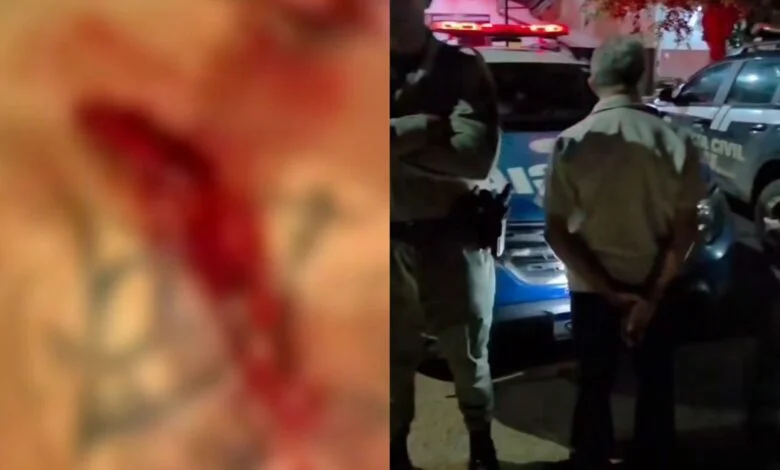 De acordo com a Polícia Militar, a vítima chegou à residência da sogra acompanhada da esposa e encontrou o suspeito visivelmente alterado. Preocupado com a segurança do filho de apenas dois anos, o homem pediu que o autor fechasse o portão do imóvel. No entanto, o pedido provocou uma reação imediata e violenta.