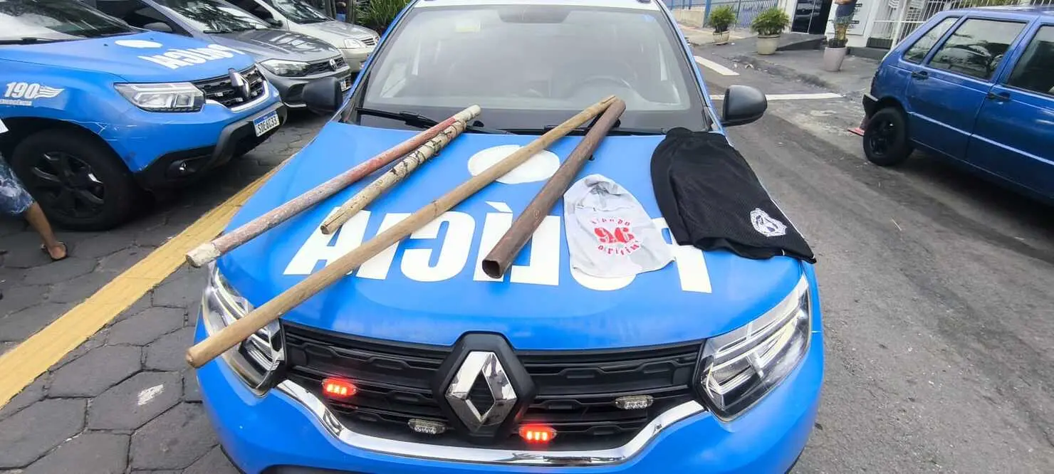 Com o grupo, os militares apreenderam objetos que teriam sido usados na ação, entre eles um bastão envolto em arame farpado.