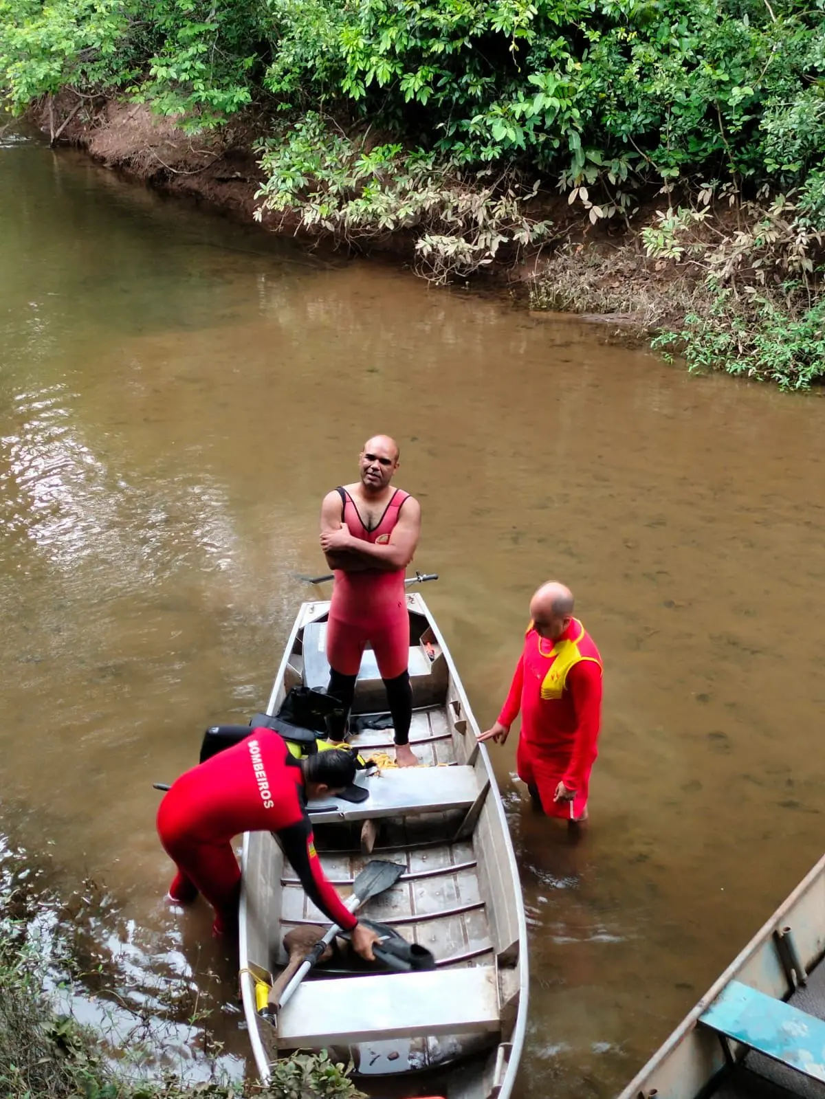 Diante da gravidade da situação, guarnições especializadas foram deslocadas imediatamente e atuaram em diferentes frentes. As equipes realizaram buscas superficiais com canoa, mergulhos profundos com resgatistas aquáticos e varreduras aéreas com drones, tecnologia utilizada para alcançar áreas de mata fechada e trechos de difícil acesso ao longo do curso do rio.
