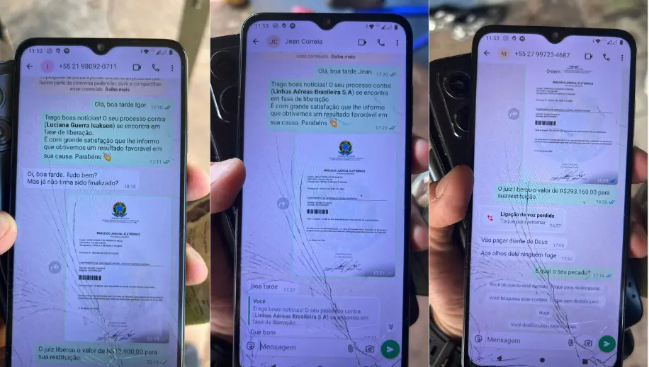 Com essas informações, ele entrava em contato com as vítimas por meio do WhatsApp, utilizando perfis configurados com nomes e fotos de advogadas, simulando ser profissional responsável pelo processo judicial.