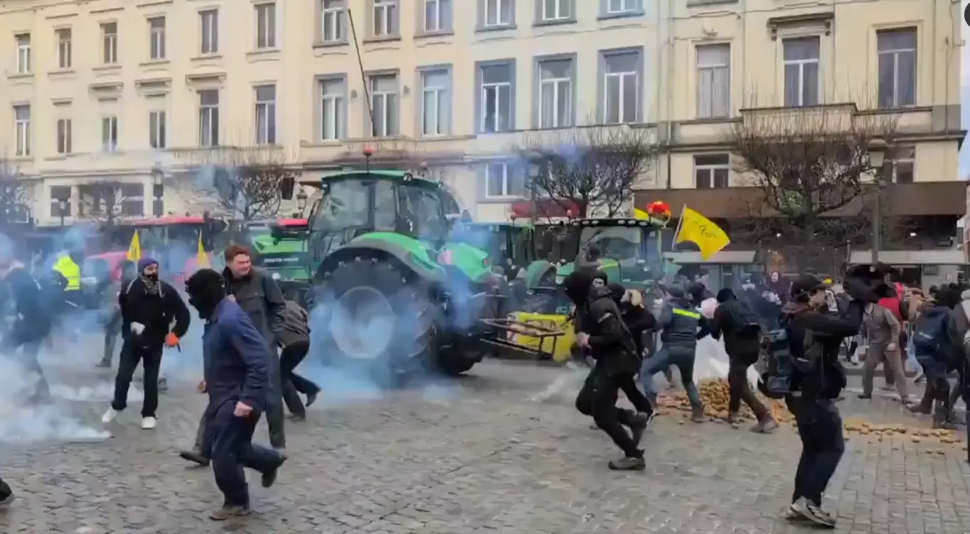 Imagens mostram centenas de tratores circulando pela capital belga e manifestantes queimando pneus, além de atirar batatas e outros objetos contra policiais nas imediações do Parlamento Europeu. A polícia belga reprimiu o protesto com gás lacrimogêneo e canhões de água.